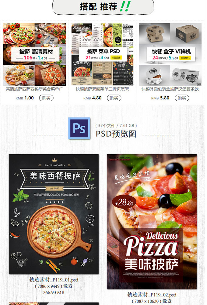 P119美食披萨外卖快餐广告海报设计菜单宣传单PSD分层模板素材